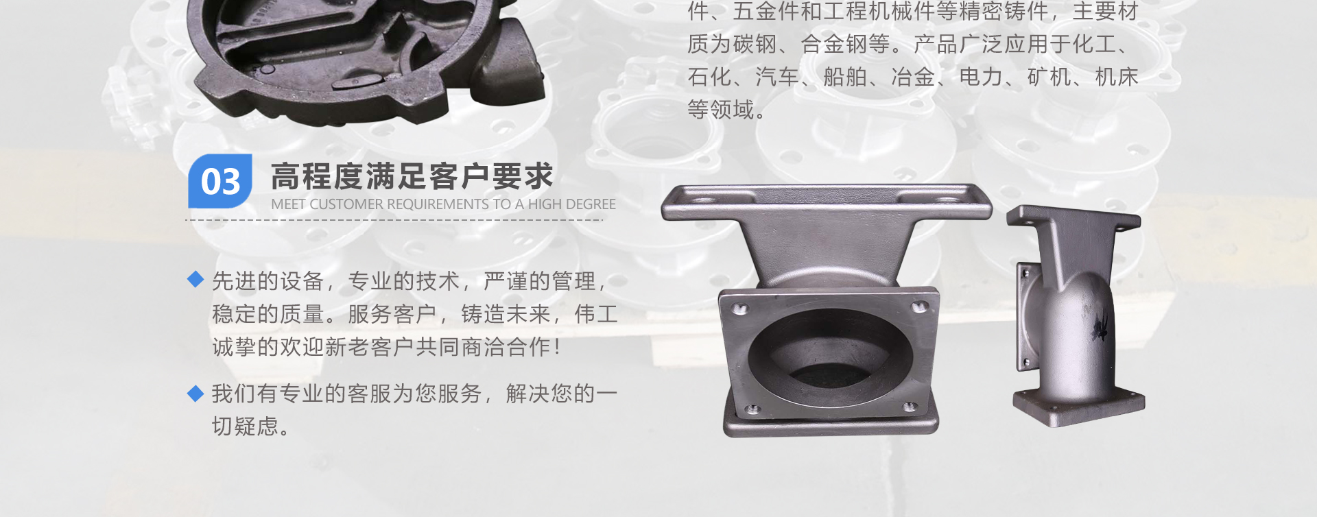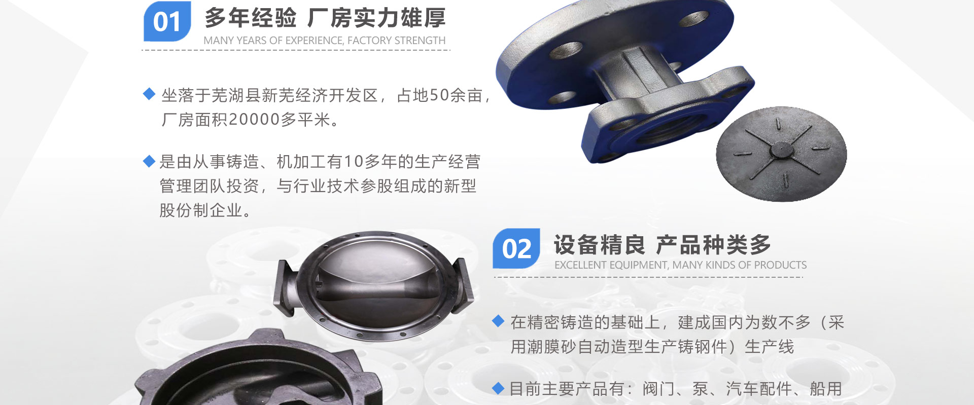 安徽偉工機(jī)械科技有限公司,坐落于安徽蕪湖新蕪經(jīng)濟(jì)開發(fā)區(qū),是一家専業(yè)從事鑄造產(chǎn)品設(shè)計、研發(fā)、生產(chǎn)、銷售于一體的企業(yè),公司為客戶的產(chǎn)品提供多樣的技術(shù)支持與設(shè)計,公司主要鑄造技術(shù)有潮模砂鑄造、硅溶膠精鑄工藝。主要產(chǎn)品有:不銹鋼閥門配件、泵閥配件、汽車配件、工業(yè)管道配件、工程機(jī)械配件、汽車配件等。材質(zhì)為:低合金鋼、304、316、316L、鉻鉬鋼、哈氏合金、碳鋼、雙相鋼等。公司已先后通過ISO9001和TS16949等多種體系審核,以完備的管理手段和齊全的檢測設(shè)備滿足客戶需求,進(jìn)的設(shè)備,専業(yè)的技術(shù),嚴(yán)謹(jǐn)?shù)墓芾恚€(wěn)定的質(zhì)量。服務(wù)客戶,鑄造未來,偉工誠摯的歡迎新老客戶共同商洽合作
